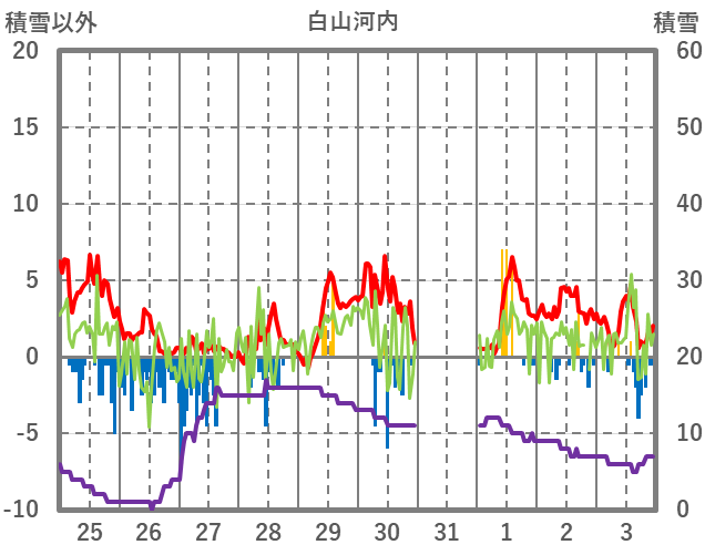 | 日 | 時 | 気温 | 降水 | 風向/風速 | 日照 | 積雪 | 降雪 |