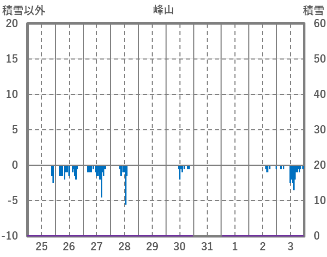 | 日 | 時 | 気温 | 降水 | 風向/風速 | 日照 | 積雪 | 降雪 |