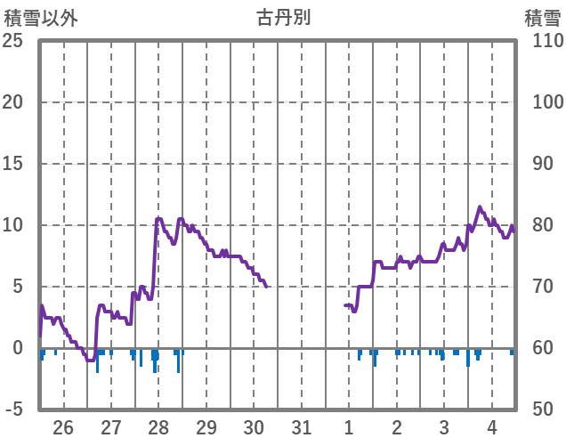| 日 | 時 | 気温 | 降水 | 風向/風速 | 日照 | 積雪 | 降雪 |