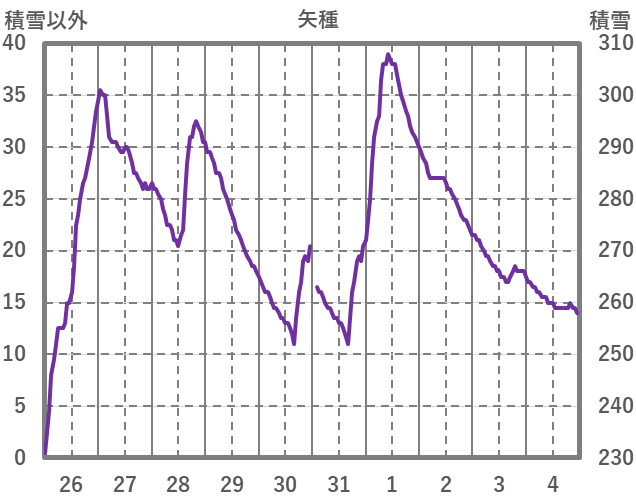 | 日 | 時 | 気温 | 降水 | 風向/風速 | 日照 | 積雪 | 降雪 |