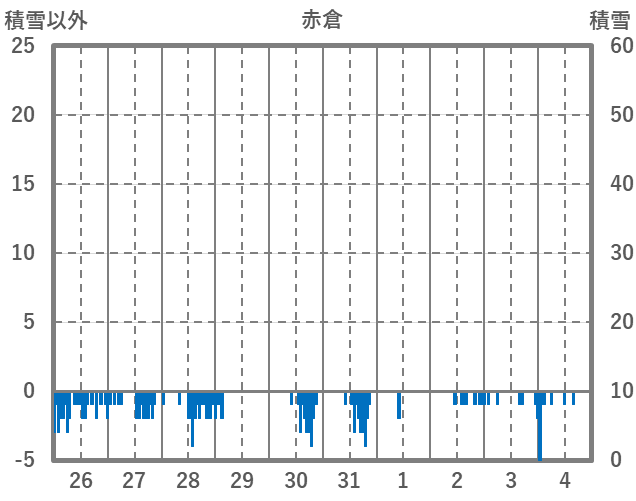 | 日 | 時 | 気温 | 降水 | 風向/風速 | 日照 | 積雪 | 降雪 |