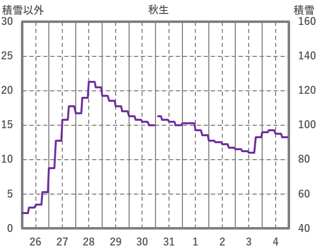 | 日 | 時 | 気温 | 降水 | 風向/風速 | 日照 | 積雪 | 降雪 |