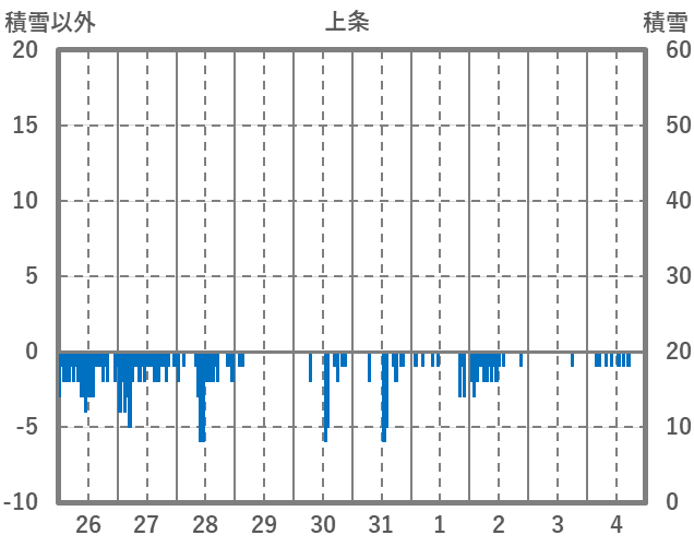 | 日 | 時 | 気温 | 降水 | 風向/風速 | 日照 | 積雪 | 降雪 |