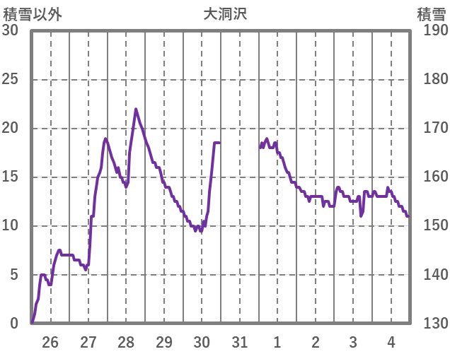| 日 | 時 | 気温 | 降水 | 風向/風速 | 日照 | 積雪 | 降雪 |