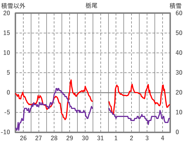 | 日 | 時 | 気温 | 降水 | 風向/風速 | 日照 | 積雪 | 降雪 |
