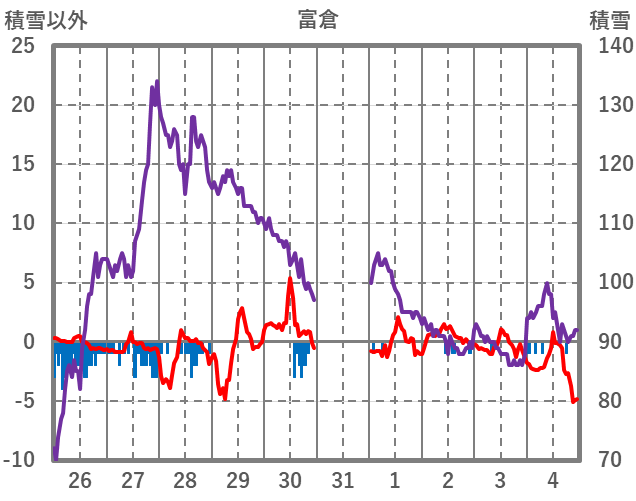 | 日 | 時 | 気温 | 降水 | 風向/風速 | 日照 | 積雪 | 降雪 |