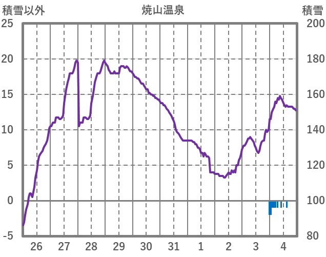 | 日 | 時 | 気温 | 降水 | 風向/風速 | 日照 | 積雪 | 降雪 |