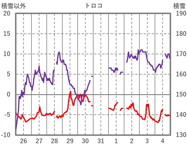 | 日 | 時 | 気温 | 降水 | 風向/風速 | 日照 | 積雪 | 降雪 |