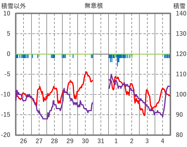 | 日 | 時 | 気温 | 降水 | 風向/風速 | 日照 | 積雪 | 降雪 |