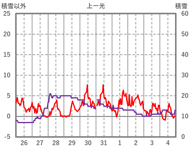 | 日 | 時 | 気温 | 降水 | 風向/風速 | 日照 | 積雪 | 降雪 |