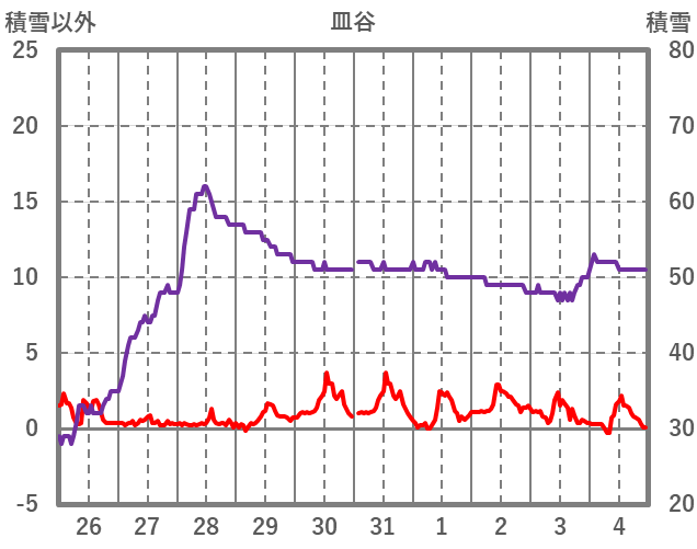| 日 | 時 | 気温 | 降水 | 風向/風速 | 日照 | 積雪 | 降雪 |