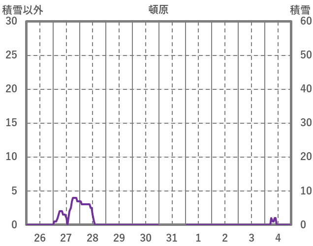 | 日 | 時 | 気温 | 降水 | 風向/風速 | 日照 | 積雪 | 降雪 |