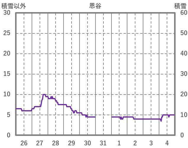 | 日 | 時 | 気温 | 降水 | 風向/風速 | 日照 | 積雪 | 降雪 |