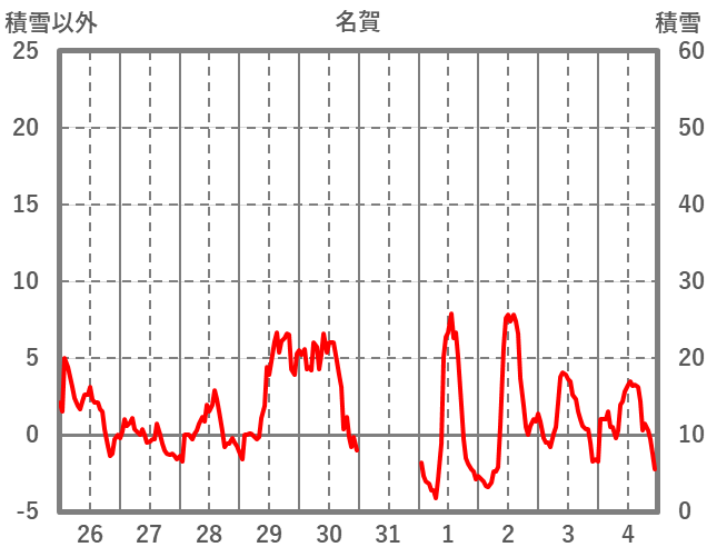 | 日 | 時 | 気温 | 降水 | 風向/風速 | 日照 | 積雪 | 降雪 |