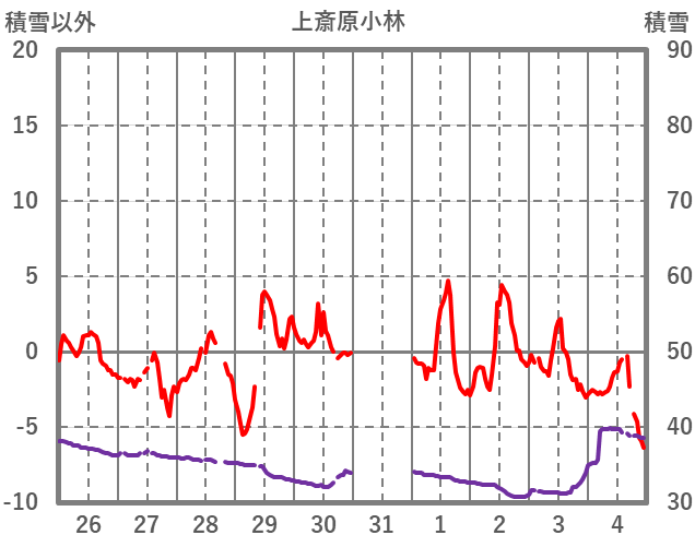 | 日 | 時 | 気温 | 降水 | 風向/風速 | 日照 | 積雪 | 降雪 |