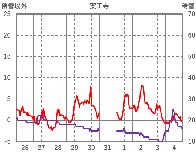 | 日 | 時 | 気温 | 降水 | 風向/風速 | 日照 | 積雪 | 降雪 |