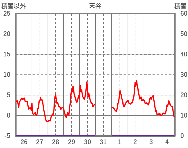 | 日 | 時 | 気温 | 降水 | 風向/風速 | 日照 | 積雪 | 降雪 |