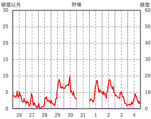 | 日 | 時 | 気温 | 降水 | 風向/風速 | 日照 | 積雪 | 降雪 |