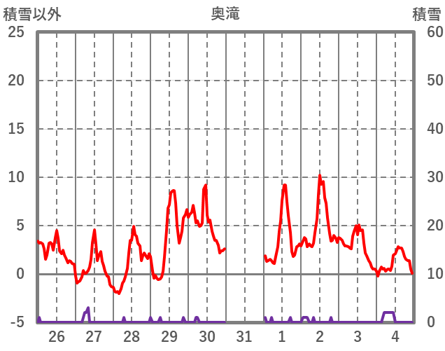 | 日 | 時 | 気温 | 降水 | 風向/風速 | 日照 | 積雪 | 降雪 |