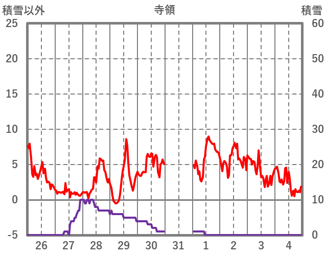 | 日 | 時 | 気温 | 降水 | 風向/風速 | 日照 | 積雪 | 降雪 |