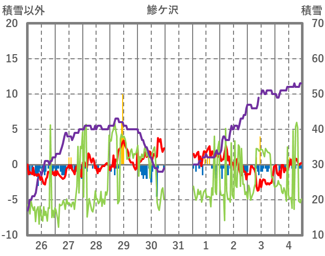| 日 | 時 | 気温 | 降水 | 風向/風速 | 日照 | 積雪 | 降雪 |
