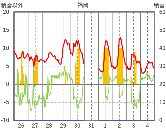| 日 | 時 | 気温 | 降水 | 風向/風速 | 日照 | 積雪 | 降雪 |