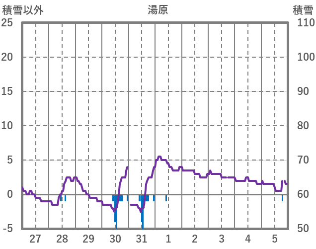 | 日 | 時 | 気温 | 降水 | 風向/風速 | 日照 | 積雪 | 降雪 |