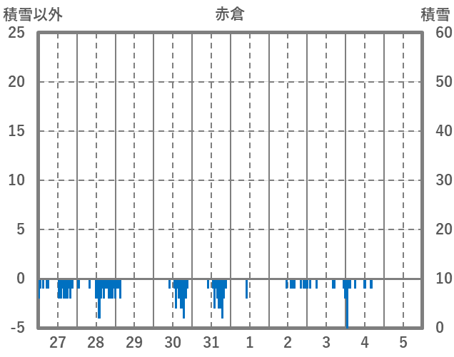 | 日 | 時 | 気温 | 降水 | 風向/風速 | 日照 | 積雪 | 降雪 |
