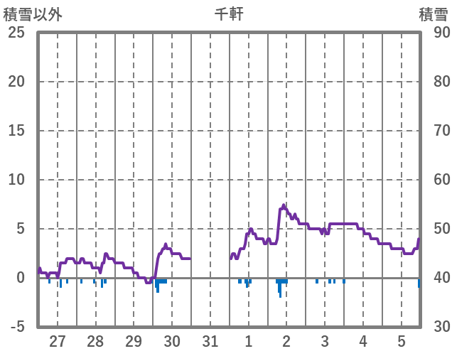 | 日 | 時 | 気温 | 降水 | 風向/風速 | 日照 | 積雪 | 降雪 |