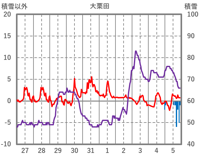 | 日 | 時 | 気温 | 降水 | 風向/風速 | 日照 | 積雪 | 降雪 |