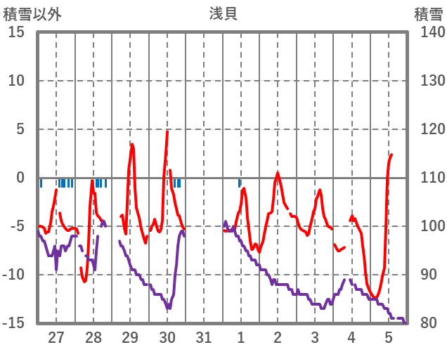 | 日 | 時 | 気温 | 降水 | 風向/風速 | 日照 | 積雪 | 降雪 |