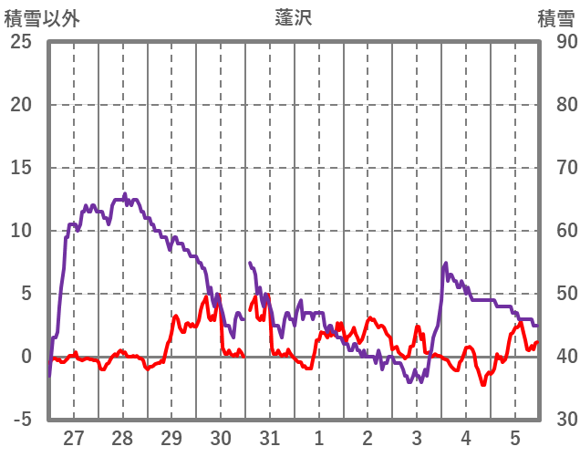 | 日 | 時 | 気温 | 降水 | 風向/風速 | 日照 | 積雪 | 降雪 |