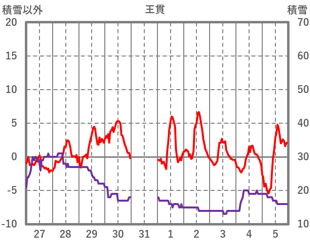 | 日 | 時 | 気温 | 降水 | 風向/風速 | 日照 | 積雪 | 降雪 |