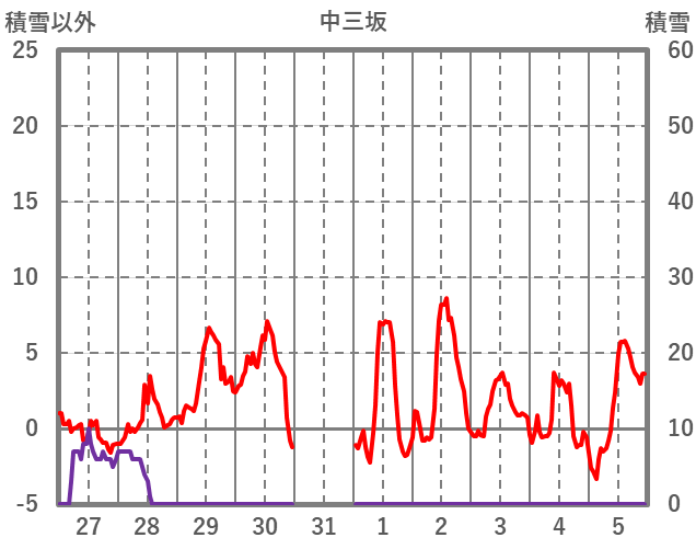 | 日 | 時 | 気温 | 降水 | 風向/風速 | 日照 | 積雪 | 降雪 |