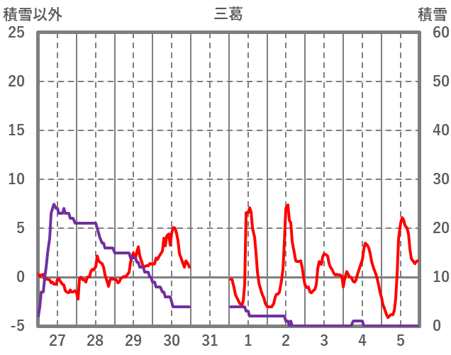 | 日 | 時 | 気温 | 降水 | 風向/風速 | 日照 | 積雪 | 降雪 |
