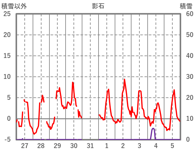 | 日 | 時 | 気温 | 降水 | 風向/風速 | 日照 | 積雪 | 降雪 |