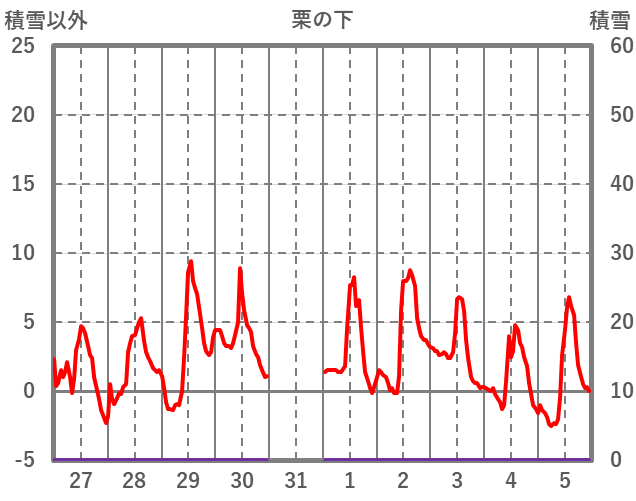 | 日 | 時 | 気温 | 降水 | 風向/風速 | 日照 | 積雪 | 降雪 |