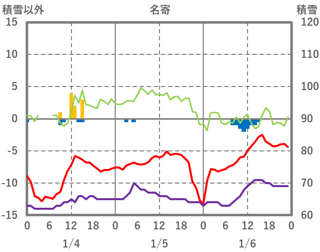 | 日 | 時 | 気温 | 降水 | 風向/風速 | 日照 | 積雪 | 降雪 |