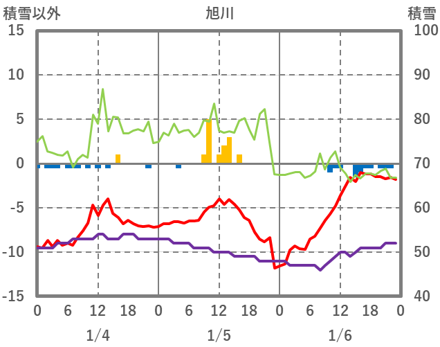| 日 | 時 | 気温 | 降水 | 風向/風速 | 日照 | 積雪 | 降雪 |