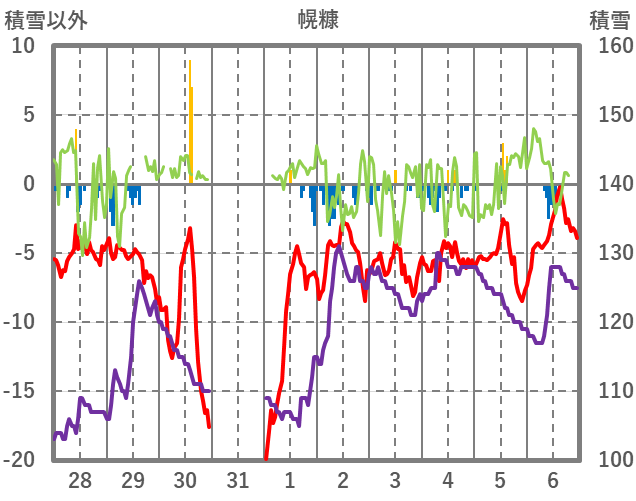 | 日 | 時 | 気温 | 降水 | 風向/風速 | 日照 | 積雪 | 降雪 |
