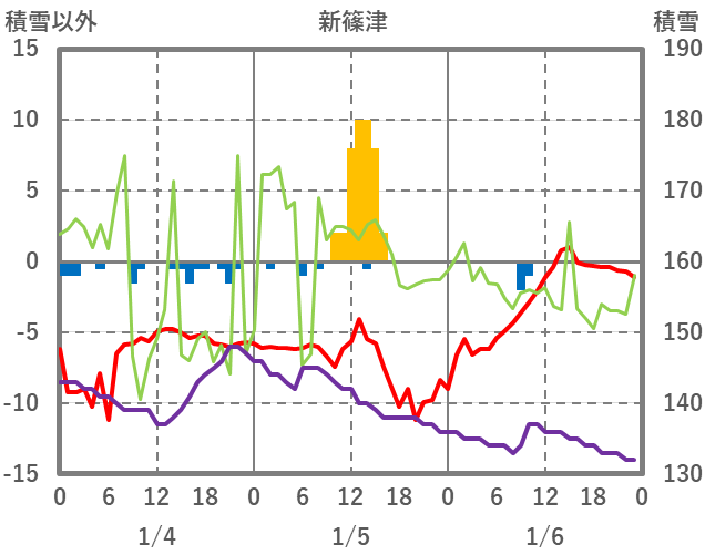 | 日 | 時 | 気温 | 降水 | 風向/風速 | 日照 | 積雪 | 降雪 |