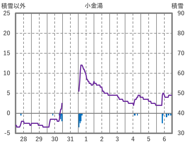 | 日 | 時 | 気温 | 降水 | 風向/風速 | 日照 | 積雪 | 降雪 |