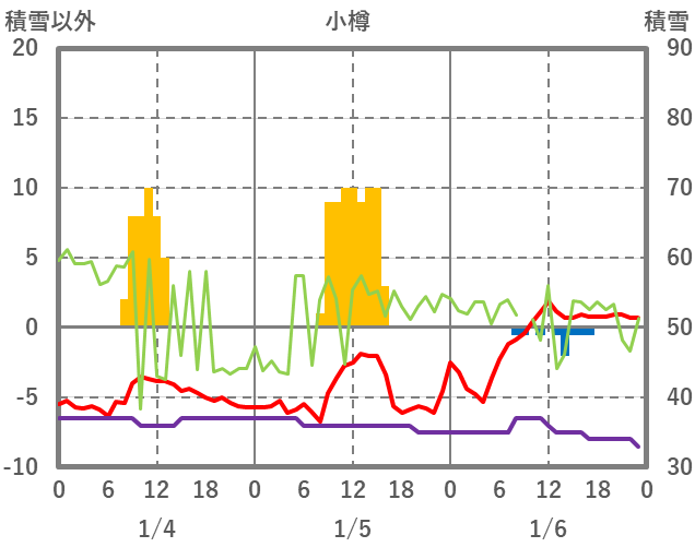 | 日 | 時 | 気温 | 降水 | 風向/風速 | 日照 | 積雪 | 降雪 |