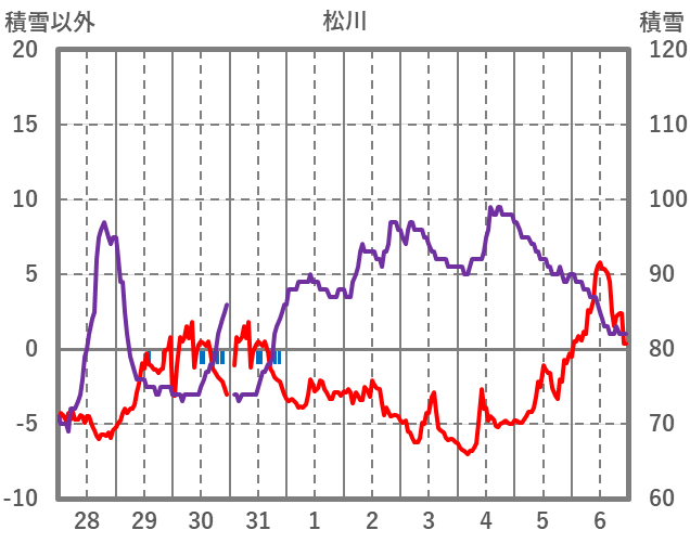| 日 | 時 | 気温 | 降水 | 風向/風速 | 日照 | 積雪 | 降雪 |