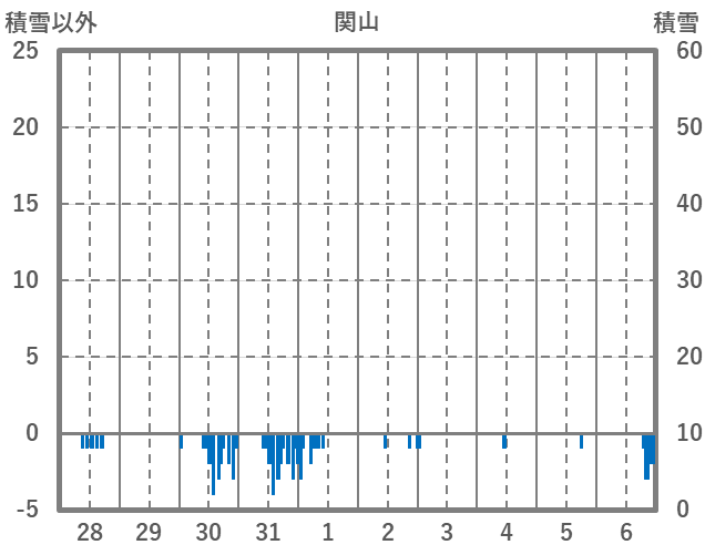 | 日 | 時 | 気温 | 降水 | 風向/風速 | 日照 | 積雪 | 降雪 |