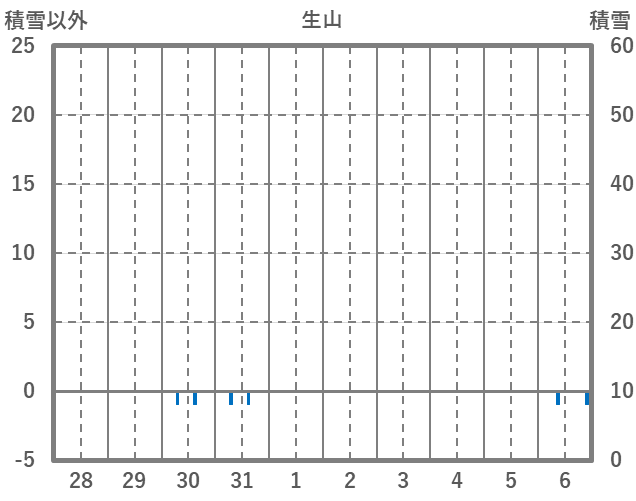 | 日 | 時 | 気温 | 降水 | 風向/風速 | 日照 | 積雪 | 降雪 |