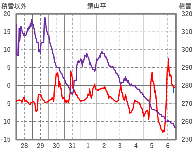 | 日 | 時 | 気温 | 降水 | 風向/風速 | 日照 | 積雪 | 降雪 |