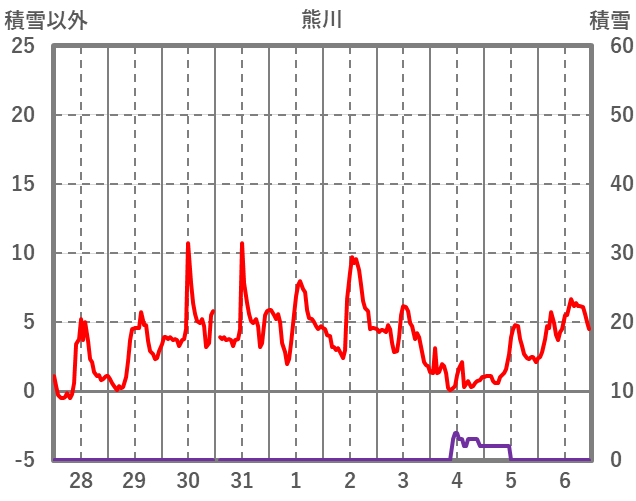 | 日 | 時 | 気温 | 降水 | 風向/風速 | 日照 | 積雪 | 降雪 |
