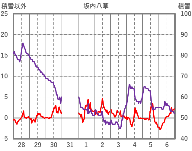 | 日 | 時 | 気温 | 降水 | 風向/風速 | 日照 | 積雪 | 降雪 |