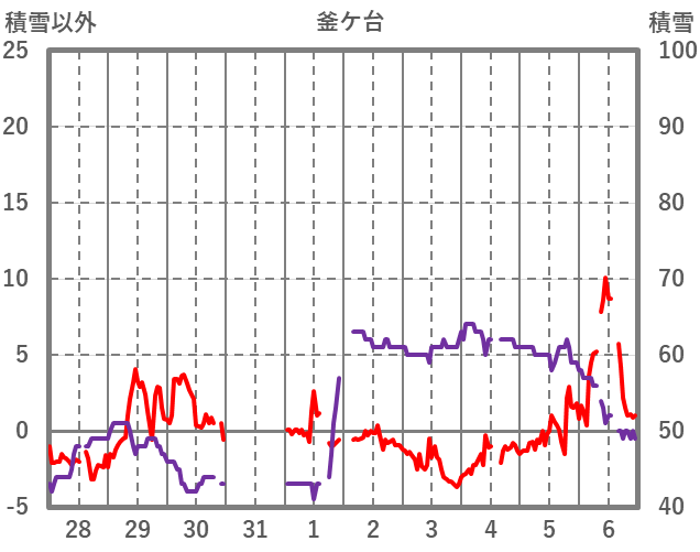 | 日 | 時 | 気温 | 降水 | 風向/風速 | 日照 | 積雪 | 降雪 |